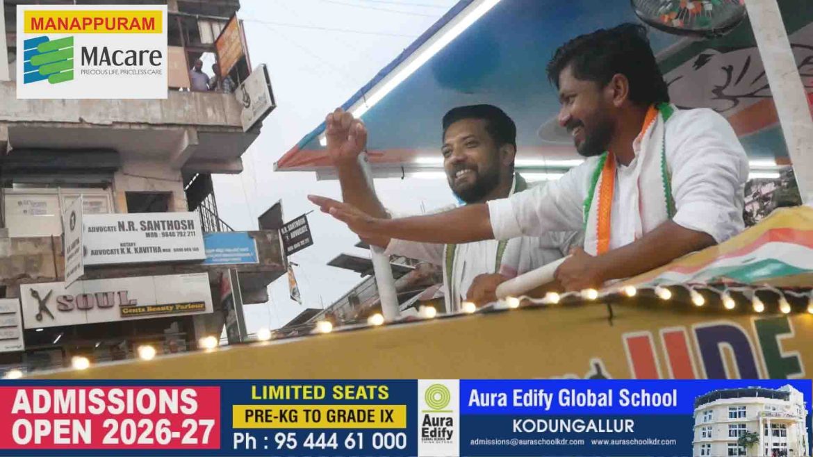 Malayalam കൊടുങ്ങല്ലൂരിനെ ഇളക്കിമറിച്ച് ഷാഫി പറമ്പിൽ നയിച്ച ഒ ജെ ജനീഷിന്റെ റോഡ് ഷോ by Editor March 27, 2026 written by Editor March 27, 2026 Share this...FacebookPinterestTwitterLinkedin 0 comment 0 FacebookTwitterPinterestEmail Editor previous post എൽ ഡി എഫും, യുഡിഎഫും കുറുവ സംഘങ്ങളാണെന്ന് എൻ ഡി എ സ്ഥാനാർത്ഥി ഡോ. വർഗീസ് ജോർജ് You may also like എൽ ഡി എഫും, യുഡിഎഫും കുറുവ സംഘങ്ങളാണെന്ന് എൻ ഡി... March 27, 2026 വയനാട് ദുരന്ത ബാധ്യതയുടെ പേരിൽ പണം പിരിച്ച് തട്ടിപ്പ് നടത്തിയ... March 26, 2026 സ്കൂൾ വിദ്യാർത്ഥിനിക്ക് നേരെ ലൈംഗികാതിക്രമം, യുവാവിന് കഠിന തടവും പിഴയും March 26, 2026 പോക്സോ കേസിലെ പ്രതിയെ വെറുതെ വിട്ടു March 25, 2026 ഹാഷിഷ് ഓയിലുമായി യുവതി പിടിയിൽ March 24, 2026 കൊടുങ്ങല്ലൂർ സി ഐ ഓഫീസ് ജംഗ്ഷനിൽ എസ് വി യു... March 24, 2026 ഗർഭസ്ഥ ശിശുവിന്റെ മൃതദേഹം ഫ്രിഡ്ജിനുള്ളിൽ March 23, 2026 വാഹനാപകടം യുവാവ് മരിച്ചു March 23, 2026 വലിയ തമ്പുരാന് ഗാർഡ് ഓഫ് ഓണർ നൽകിയില്ല കൊടുങ്ങല്ലൂർ ക്ഷേത്ര... March 22, 2026 പട്ടാര്യസമാജത്തിന്റെ കുശ്മാണ്ഡ ബലിയോടെ ഭരണിയാഘോഷത്തിന് സമാപനം, ധീവര സമുദായത്തിന്റെ താലിയും... March 22, 2026 Leave a Comment Cancel Reply Save my name, email, and website in this browser for the next time I comment.